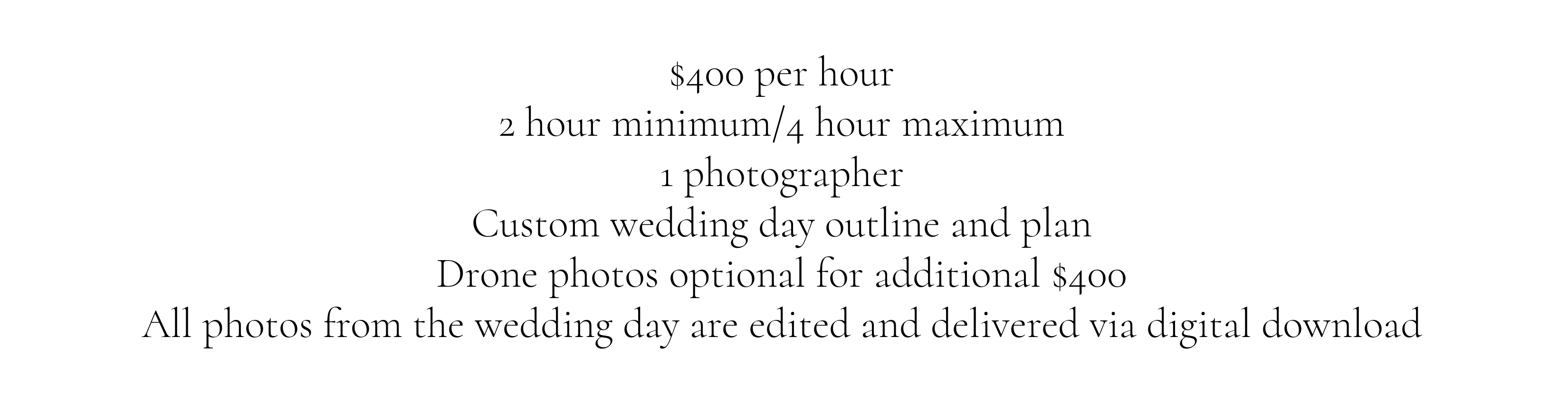 Every package includes professionally edited, high-resolution images delivered via online gallery, giving you the full story from start to finish. Add-on options, like drone photography or extended coverage, allow you to customize your package for exactly what you need.